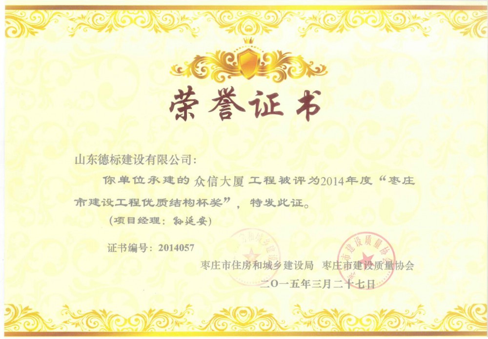 2014年度市優(yōu)質(zhì)結(jié)構(gòu)-眾信大廈